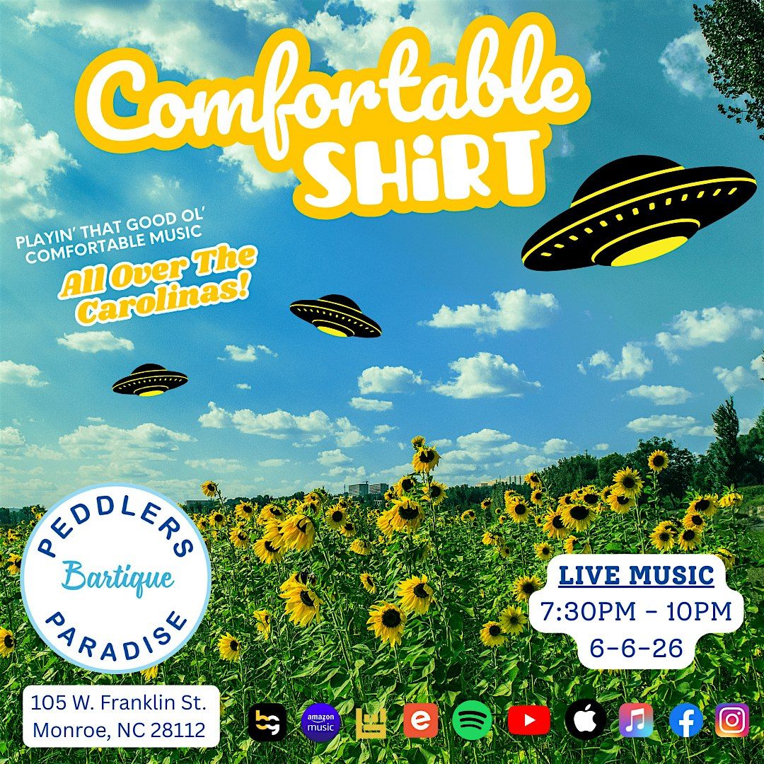Comfortable Shirt brings their patented blend of rock, pop, country, rhythm and blues to The Peddler's Paradise in Downtown Monroe, NC.About this Event