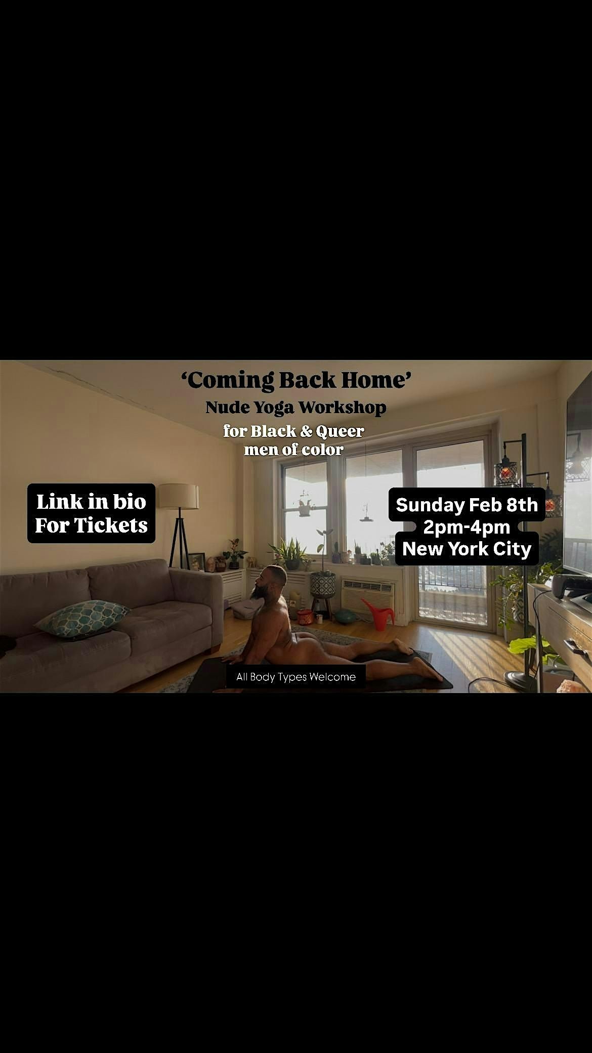 This nude yoga workshop is a gentle, affirming space created specifically for Black and queer men of color who want to explore body freedom, self-acceptance, and community in a way that feels intentional, grounded, and safe.