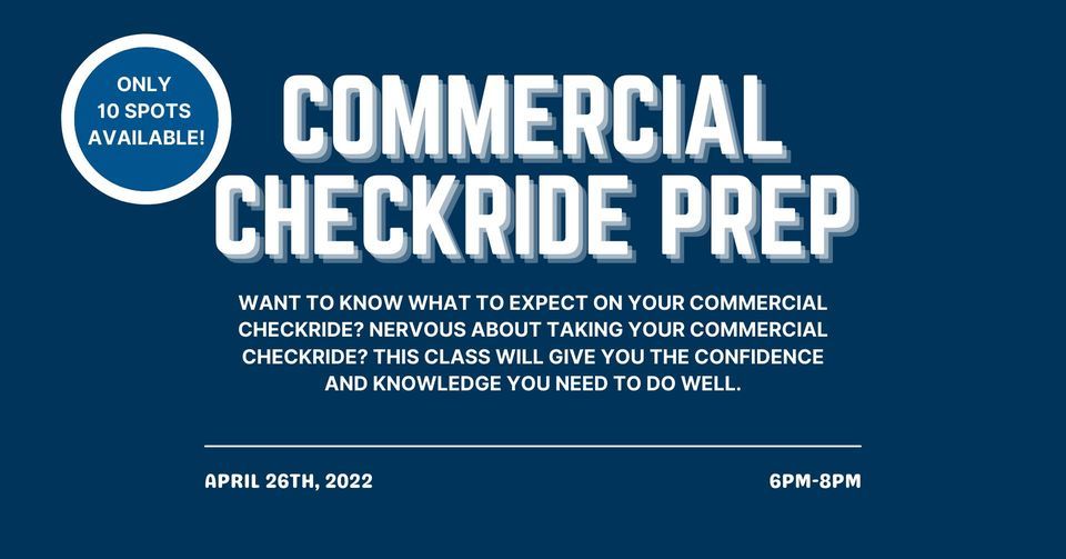 Want to know what to expect on your Commercial Checkride? Nervous about taking your Commercial Checkride?This event will give you the confidence and knowledge you need to do well on your Commercial Checkride. Please RSVP by April 25th. See you there!