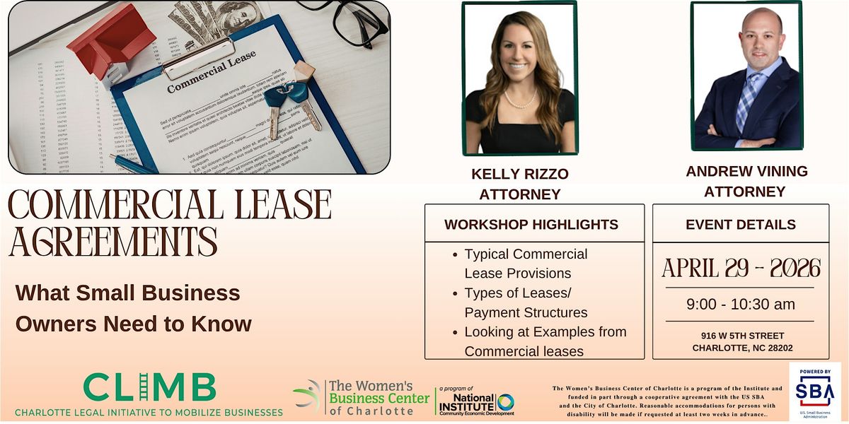 Leasing a commercial space is a major step for any business—but understanding the fine print is critical. Join us for this in-person workshop designed to help small business owners confidently navigate commercial lease agreements and avoid costly mistakes.