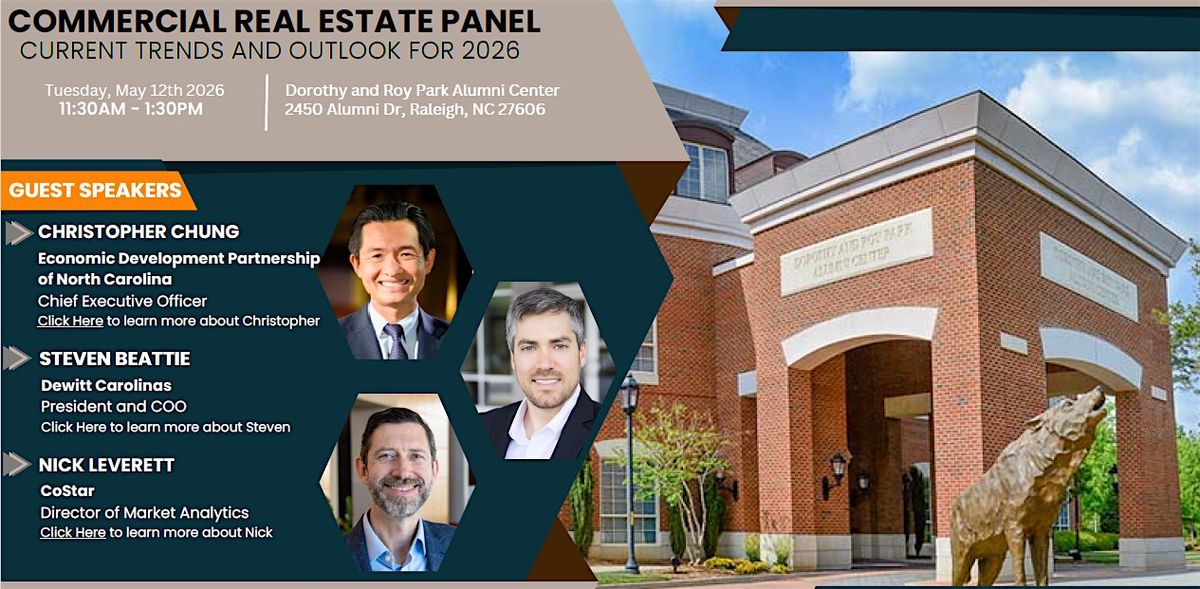 Join us for a Commercial Real Estate Panel focused on current trends shaping the Triangle Market, featuring a moderated discussion with three industry leaders. The panel will explore what's driving recent shifts across key asset classes, including development trends, leasing dynamics, and investment activity. Attendees will gain forward-looking insights on what to expect next and how local and national forces are influencing the region's commercial real estate landscape.