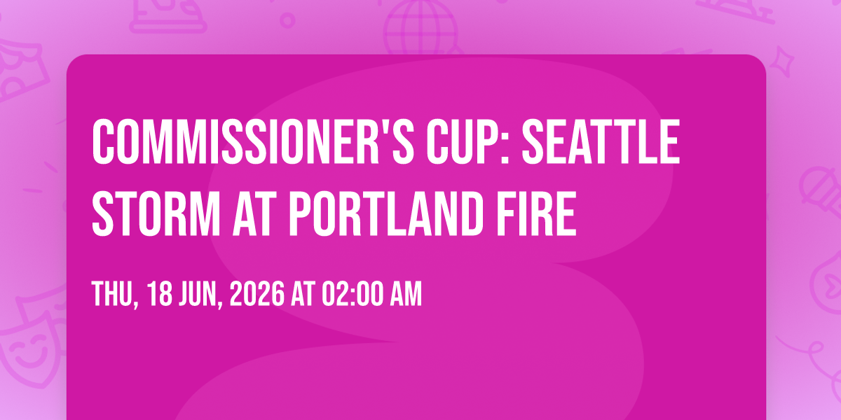 📍 Location: 45.5316, -122.667✨ Experience the magic of Commissioner's Cup: Seattle Storm at Portland Fire, where moments become memories that last a lifetime! 🏛️ The iconic Moda Center in Portland, OR sets the perfect stage for an unforgettable celebration on June 18th, 2026 at 02:00 AM. 🌟 It's been a curated experience that brings together the best of entertainment and innovation, creating an atmosphere of wonder and excitement. From the moment you arrive, you'll be immersed in a world where the ordinary transforms into the extraordinary. 🎊 Book early to secure your place in what promises to be an event that will be talked about for years to come!
