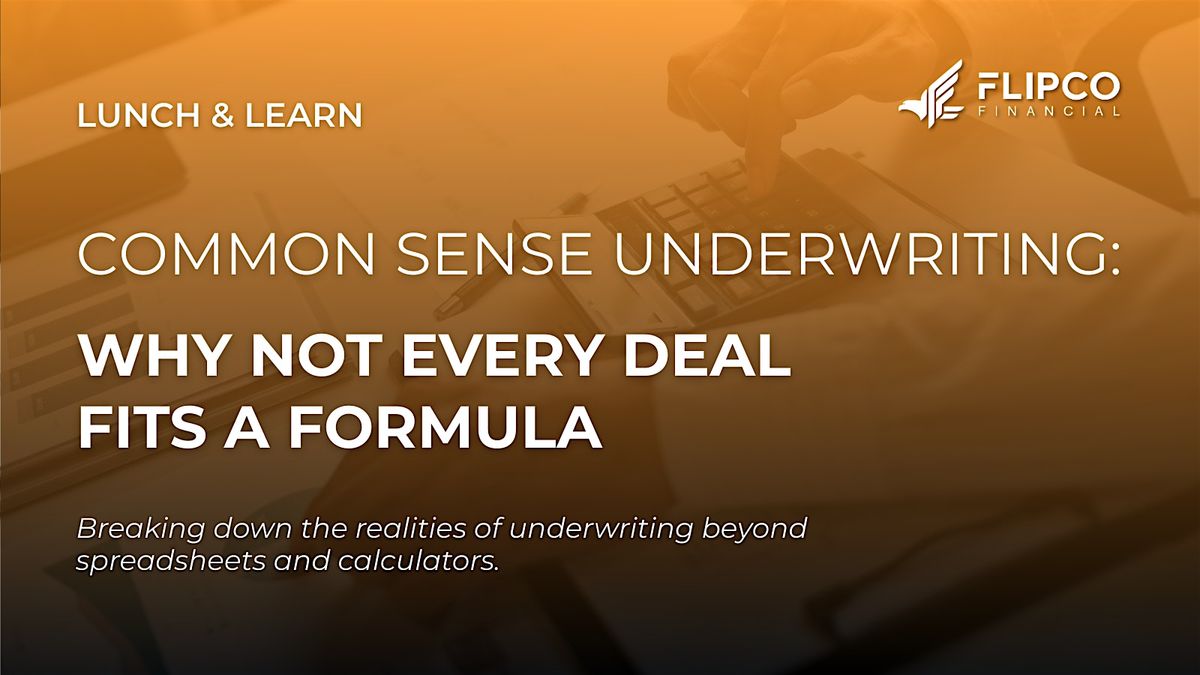 Join FlipCo Financial for an exclusive Lunch & Learn with Mike Kennedy, Vice President as he breaks down the realities of underwriting beyond spreadsheets and calculators.