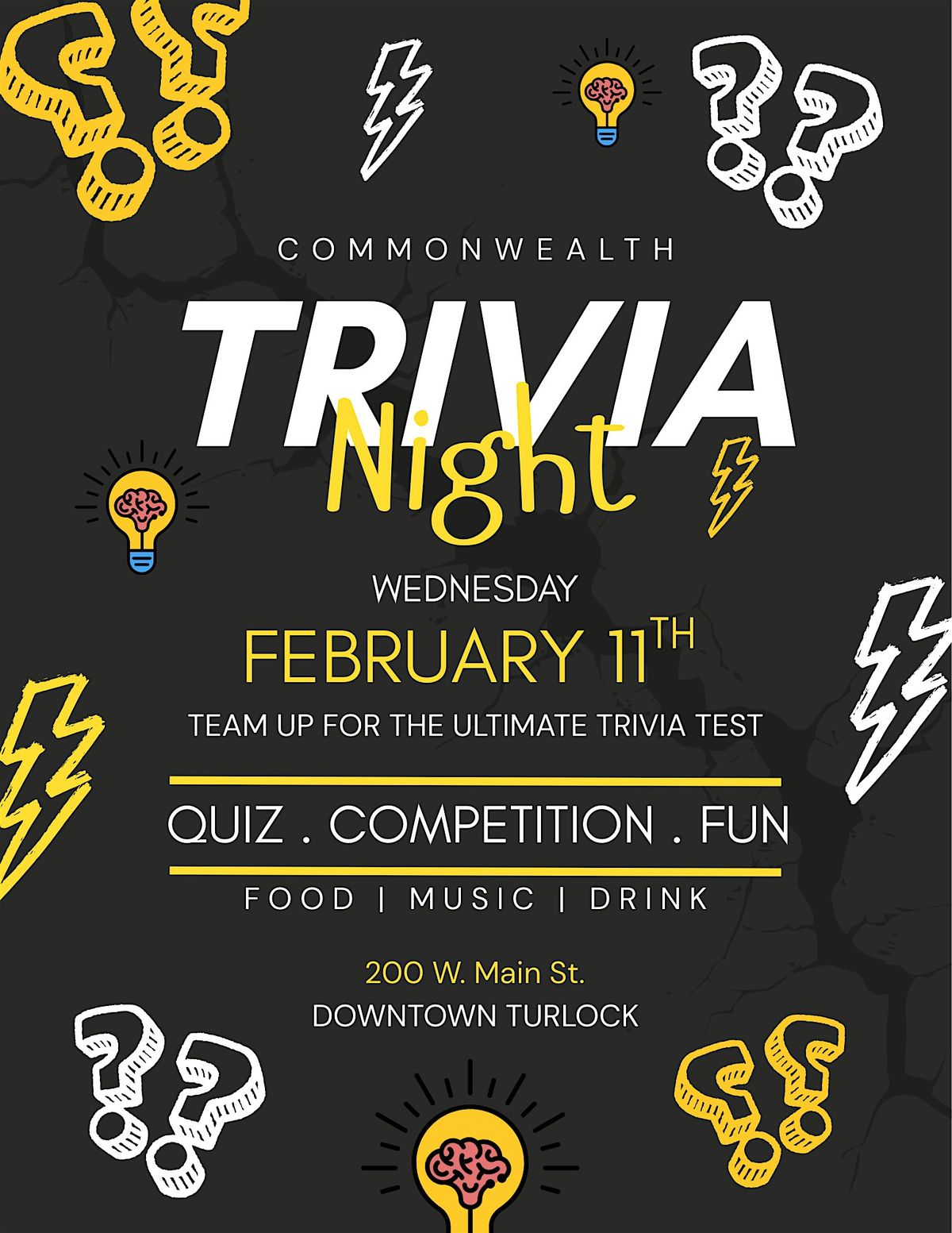 Bring your brainiac buddies and come prove your smarts at Trivia Night down at Commonwealth Turlock Wed Feb. 11thAbout this Event