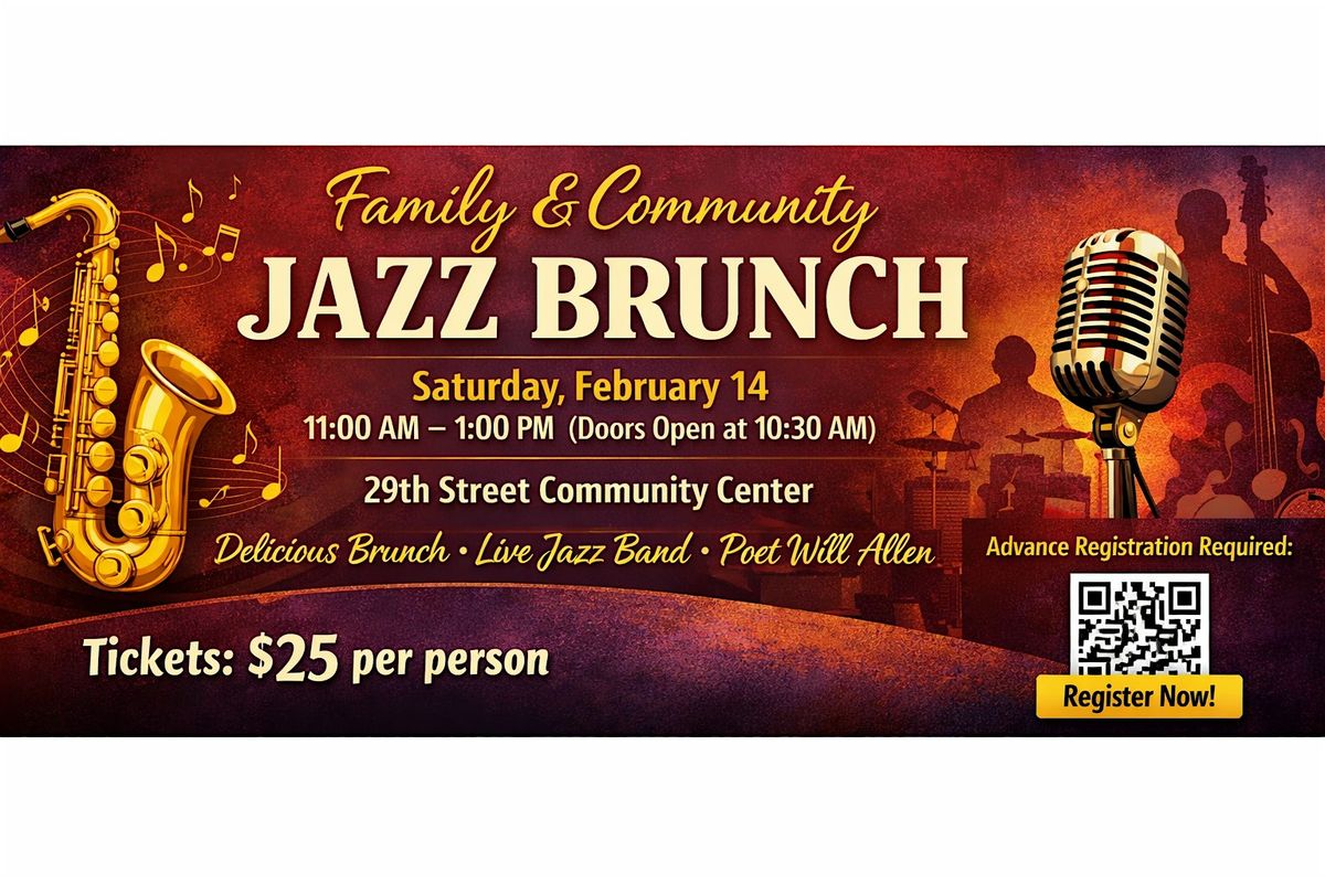 Join us for a Family & Community Jazz Brunch at the 29th Street Community Center—a welcoming space for families, neighbors, and community members to gather, connect, and enjoy live music, food, and culture.