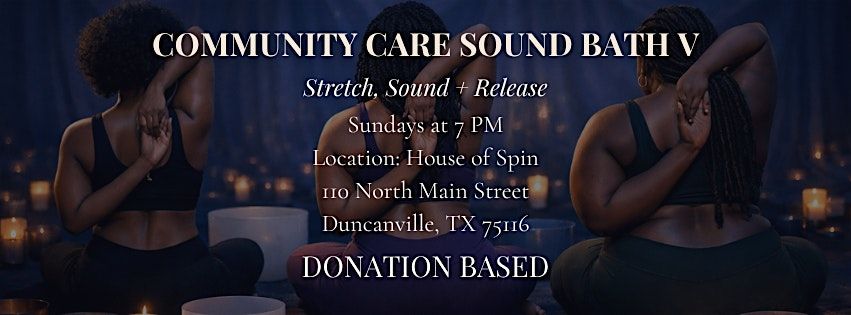 Community Care Sound Bath V: Stretch + Sound is a weekly offering centered on gentle movement and deep rest. Each session begins with 15 minutes of intentional stretching, focusing on the hips and shoulders, two areas where stress and tension are commonly stored, followed by a 40-minute immersive sound bath to support nervous system regulation and full-body relaxation.