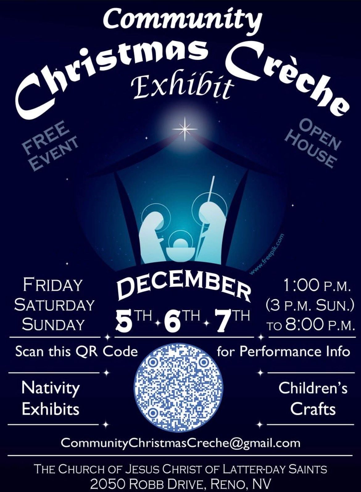 All are welcome to join us December 5-7 from 1-8pm Friday and Saturday and Sunday, December 8th from 1-3pm for our Community Christmas Creche Display at our church building. Where hundreds of Nativity will be on display, live music performed from local performers and childern's activities so there is something for everyone. Everyone is welcome, regardless of background or belief. Join us by start the Christmas season off by remembering the true meaning of Christmas the birth of Jesus Christ. Friends and Family are welcome to join. We look forward to celebrating with you! We can't wait to share this joyful event with you!
