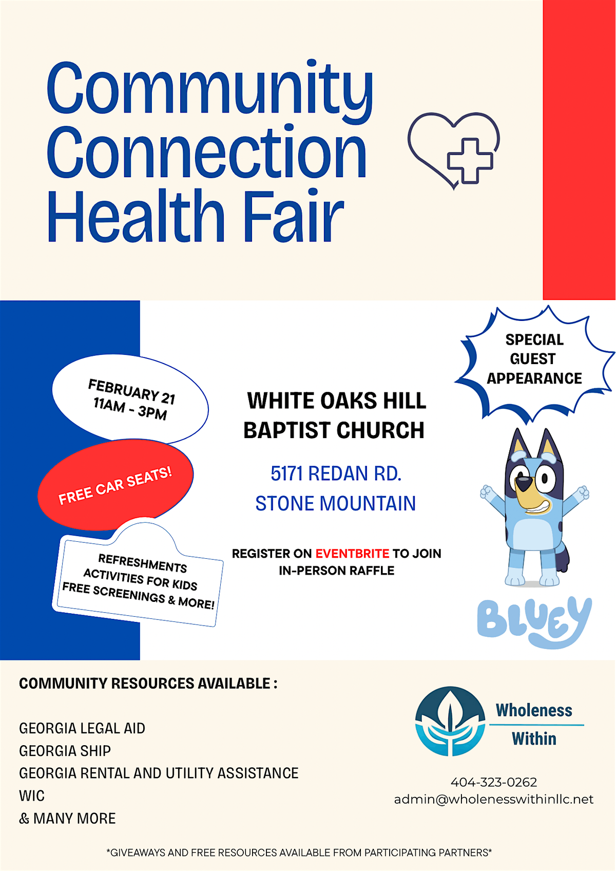 Come join us for the Community Connection Health Fair — a fun, in-person event where you can meet local health experts, enjoy great activities, and learn easy ways to boost your wellness. Whether you’re looking for quick health tips or want to connect with people in your community, this is the place to be! Don’t miss out on the chance to feel good and have fun together!