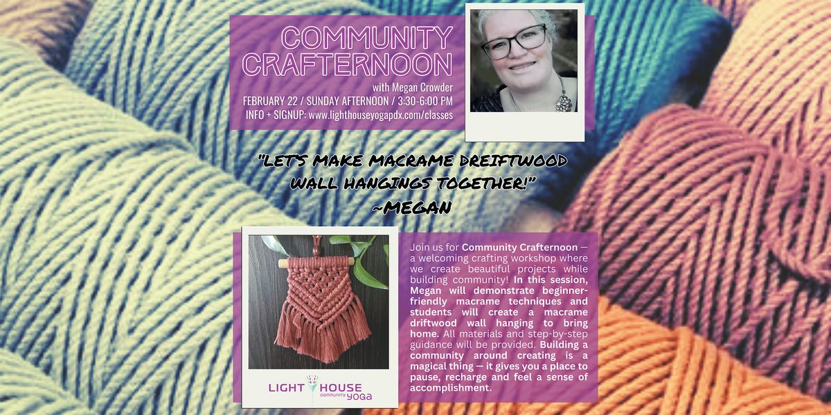 COMMUNITY CRAFTERNOON: MACRAME DRIFTWOOD WALL HANGING with Megan Crowder @ Lighthouse Community Yoga PDX / FEBRUARY 22 / SUNDAY AFTERNOON / 3:30-6:00 PM
