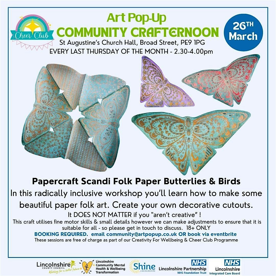 In this radically inclusive workshop you’ll learn how to make some interesting and imaginative folk art in a scandinavian style - crate a beautiful decorative butterfly or bird.