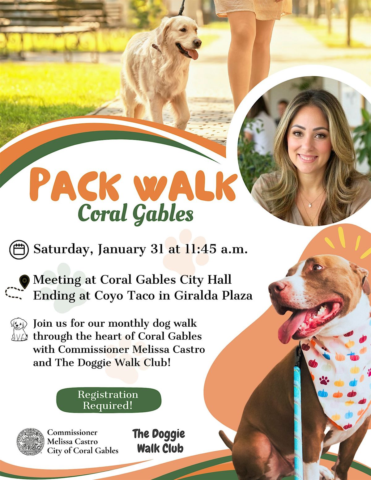 Join Commissioner Melissa Castro & The Doggie Walk Club for a fun and friendly community dog walk through the heart of Coral Gables every second Saturday of the Month! πΎ