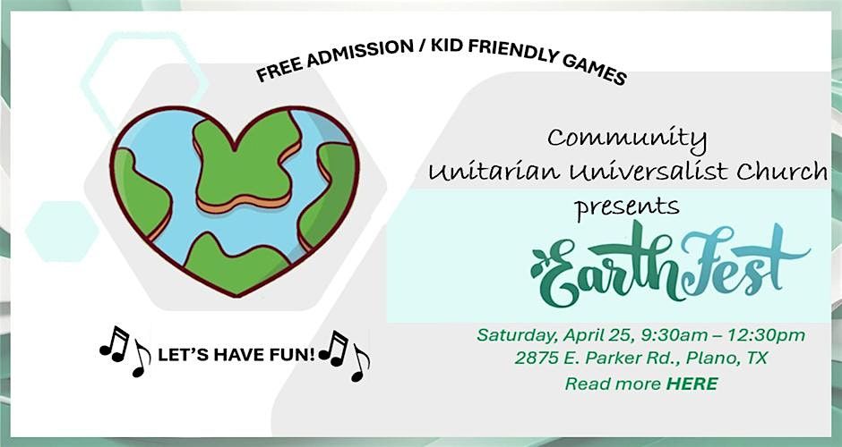 Community Unitarian Universalist (UU) Church welcomes everyone — especially families — to celebrate Earth Day at the church’s award-winning community garden on Saturday morning, April 25, 2026. Come to enjoy a bounce house, games, music, face painting, balloon artists, and more. Admission is free and canned food donations will give your family a free raffle ticket. The highlight of the event will be a Community Garden Scavenger Hunt, where participants can touch, dig, weigh, discover, test out garden tools and plant seeds of their own.