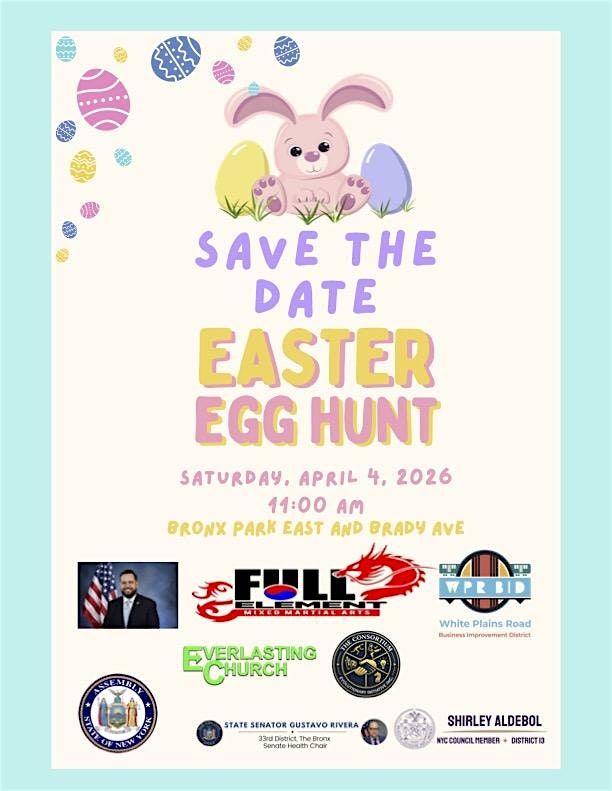 We ask that you Donate and Drop off Plastic Eggs and a bag of Chocolates at either Everlasting Church or at Full Element Martial Arts, 707 Brady Avenue Bronx NY 10462, no later than 4/1/2026 to include it in the hunt.