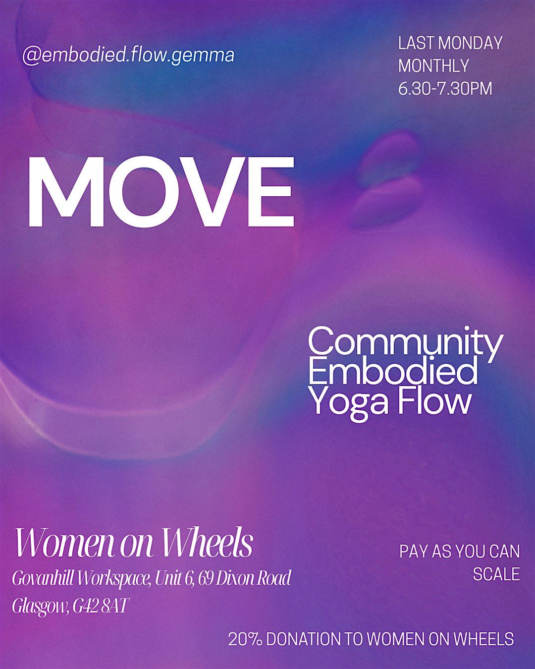 These community yoga practices will be held at Women on Wheels, a cycling charity in the south side of Glasgow.