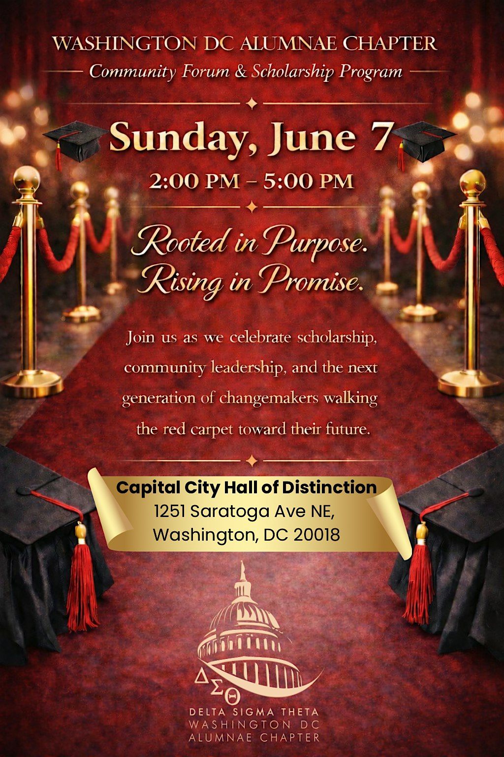 Join the Washington DC Alumnae Chapter of Delta Sigma Theta Sorority, Inc. for an inspiring afternoon celebrating scholarship, community leadership, and the next generation of change-makers.