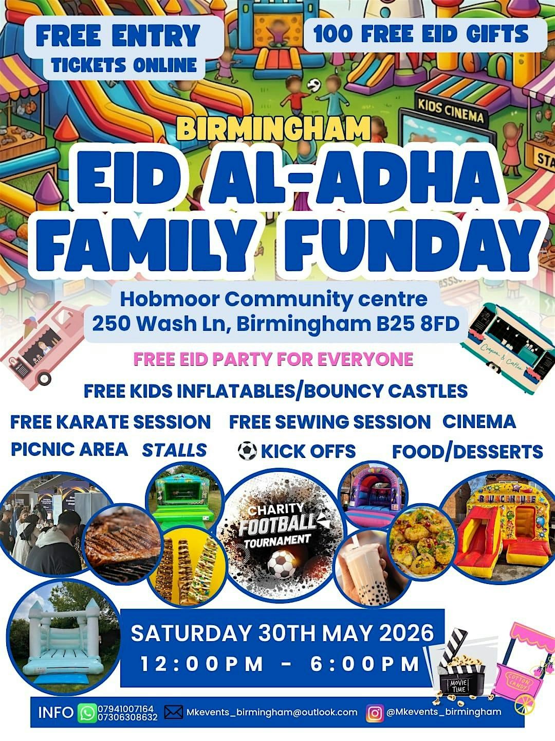 Birmingham Eid Al-Adha Family Funday:Funday packed with loads of entertainment and free activities. Bouncy castels - football tournament