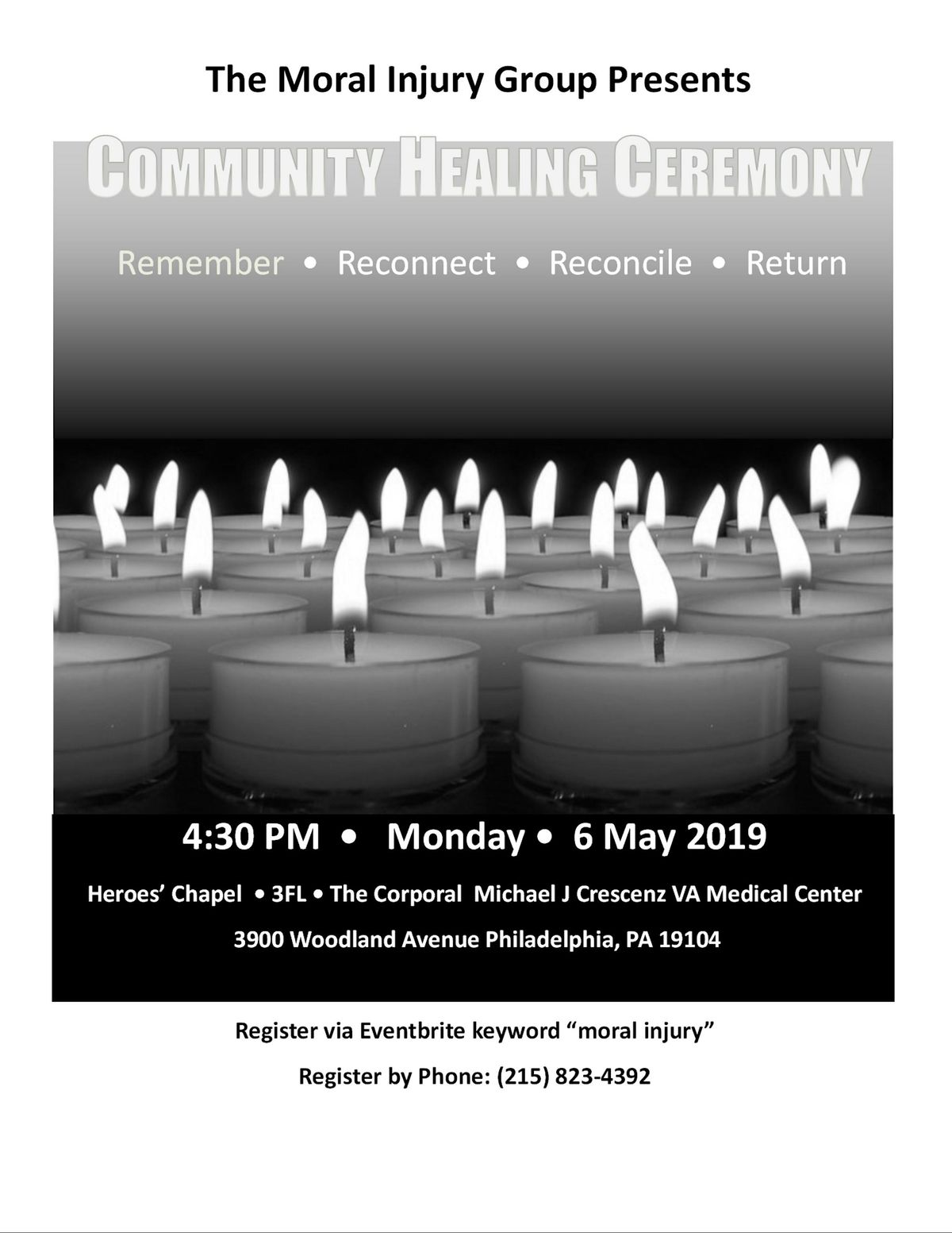 The Community Healing Ceremony is a service of reconciliation for Veterans and non-Veterans led by VA chaplains, community clergy, and Veterans.