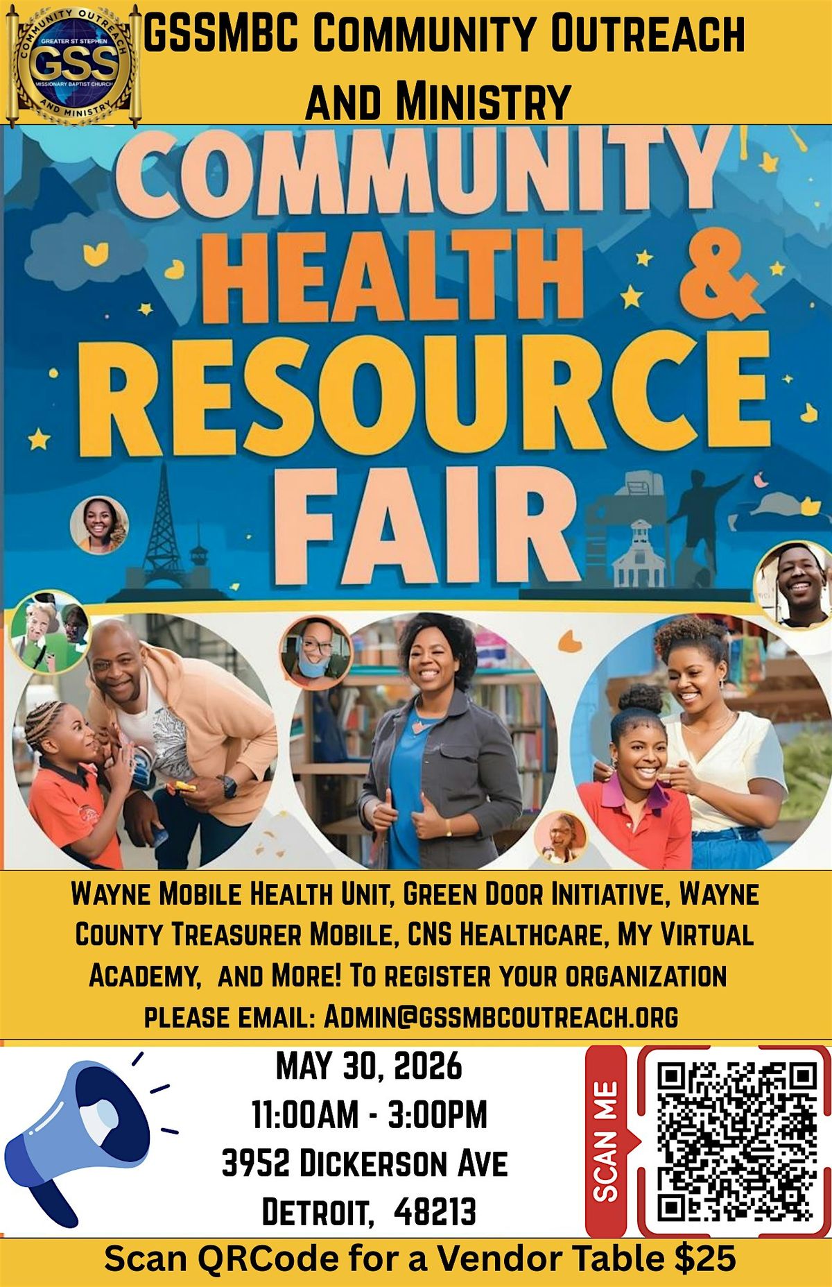 Outdoor Event – Join us to promote health, wellness and access to essential community services. Register by email www.gssmbcoutreach.org
