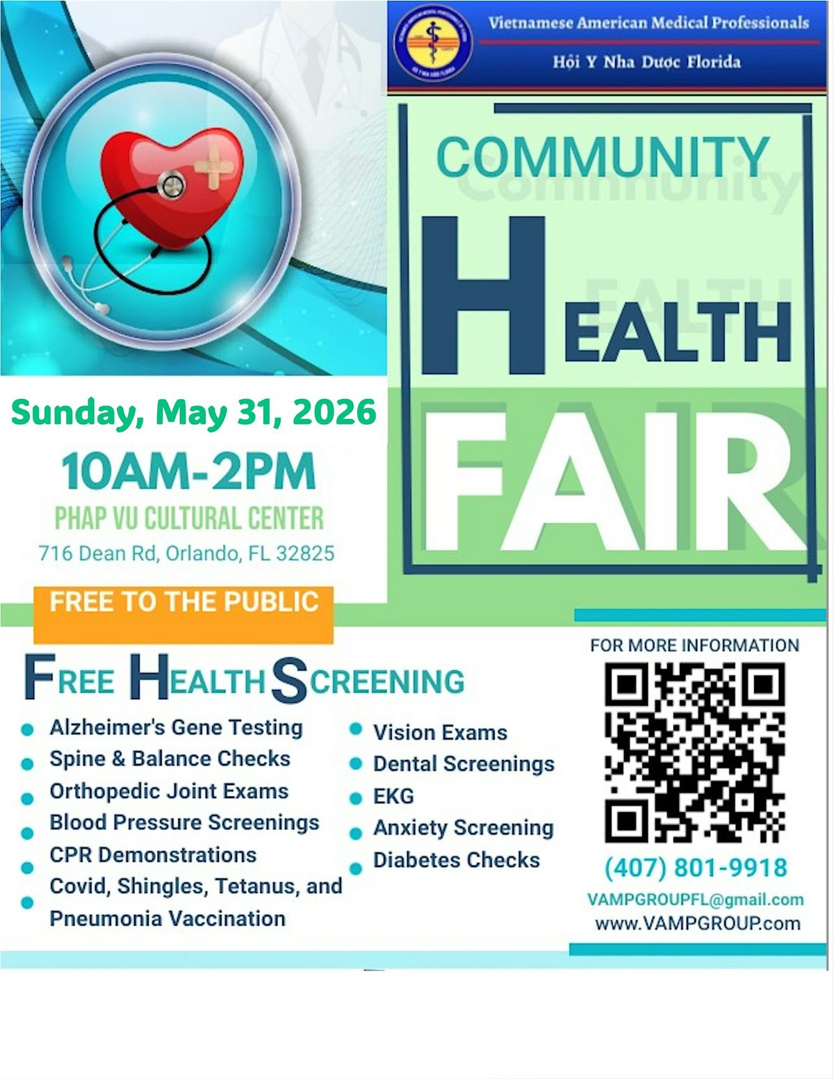 Please spread the word that we will be offering these free screening services. Everyone is welcomed! Free Event! Open to the public!