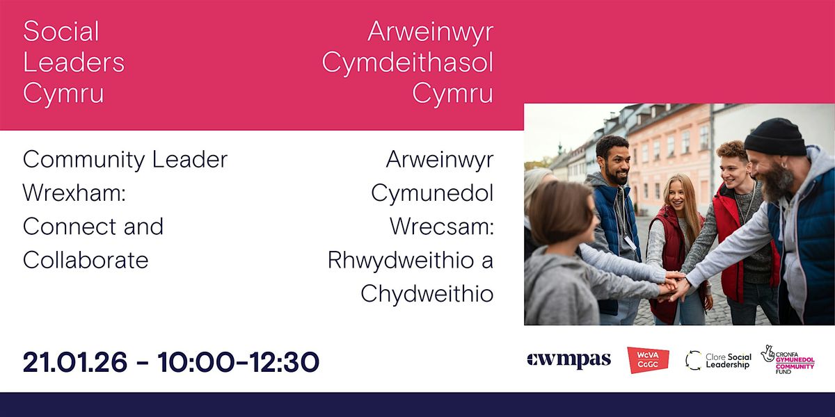 This event is part of the Social Leaders Cymru programme funded by the National Lottery Community Fund. Social Leaders Cymru is a partnership programme delivered by Cwmpas, WCVA and Clore Social Leadership. The programme has supported place-based leadership cohorts in Wrexham, Newport, Swansea, and online through our Emerging and Experienced Leaders streams.