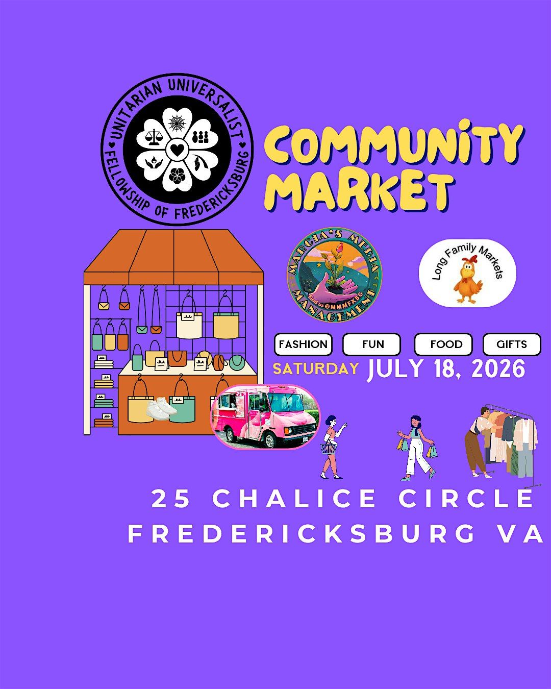 Join us for a fun in-person day at the Community Market! It’s the perfect spot to explore cool local goods inside and outside of the UUFF, chat with friendly vendors, and soak up the lively atmosphere. Whether you're hunting for unique crafts or tasty treats, there's something for everyone. Don’t miss out on this awesome way to support our neighborhood church