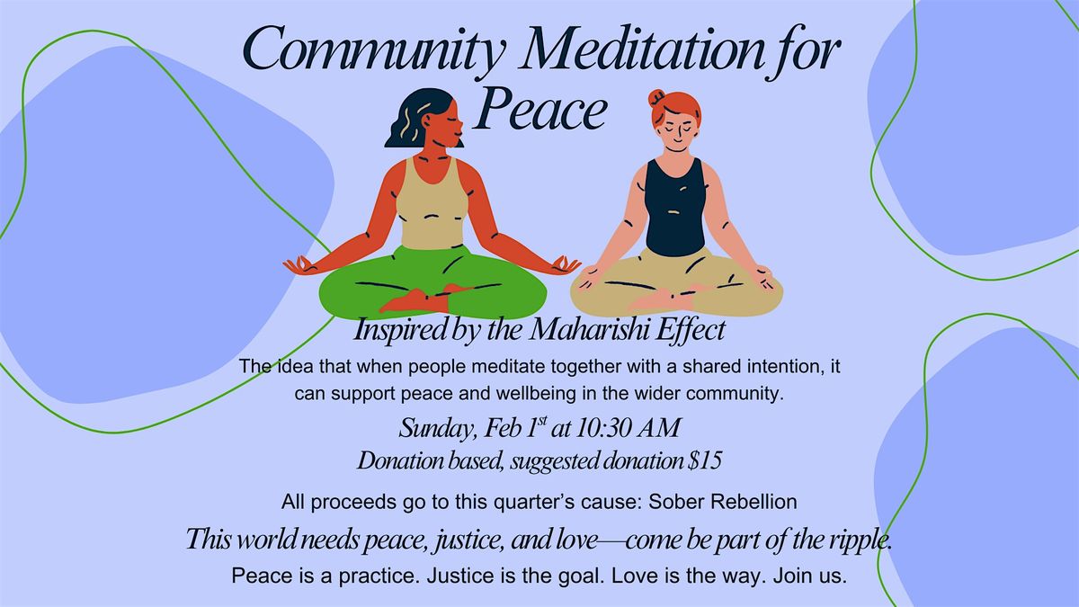 Join us for a community meditation centered on peace, justice, and love. This gathering is inspired by the Maharishi Effect—the idea that when people meditate together with a shared intention, it can support peace and wellbeing in the wider community.