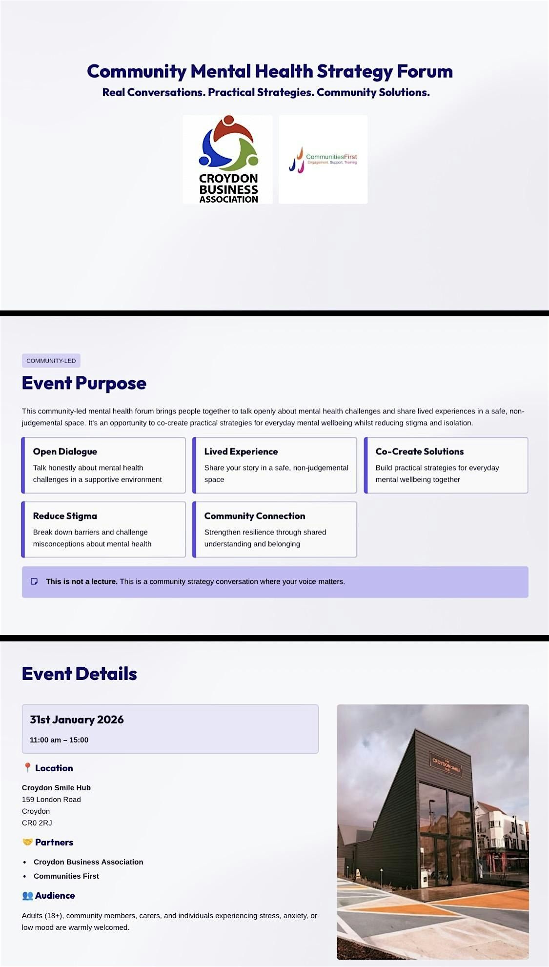 This Community-led mental health forum brings people together to talk openly about mental health challenges & share lived experiencesAbout this Event