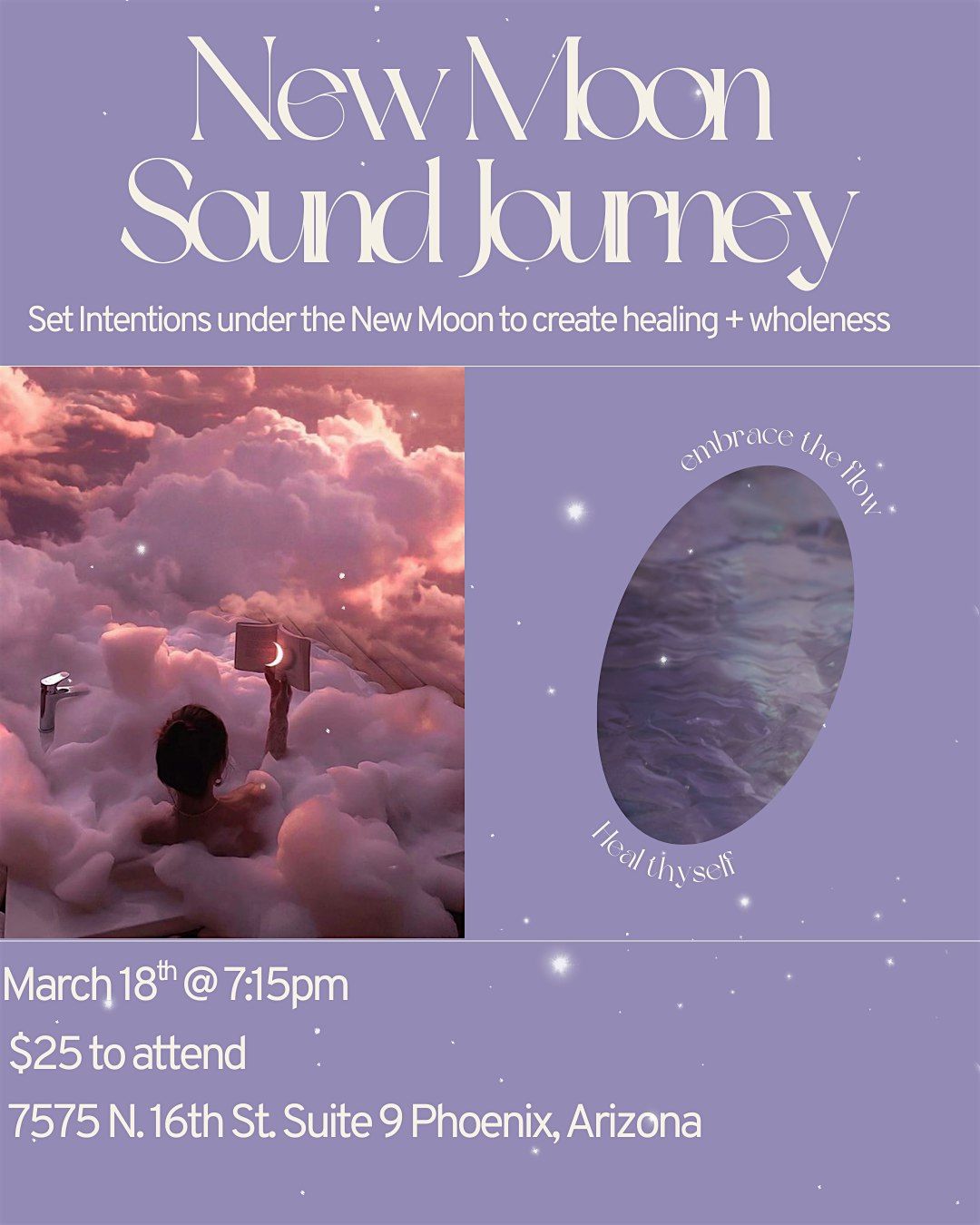 Set Intentions with the dreamy New Moon in Pisces as we connect to our highest self and Universe through the energy + vibration of Sound Medicine. Pisces connects us to the divine energy of healing, wholeness and connection. This new moon invites us to imagine health + healing for our lives so we can cultivate our next level of fulfillment.