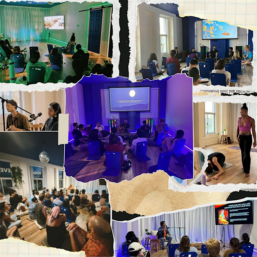 - At 6pm we'll begin immersive kirtan (musical mantra meditation). We explore different mantras each week to help us access different moods of kirtan.