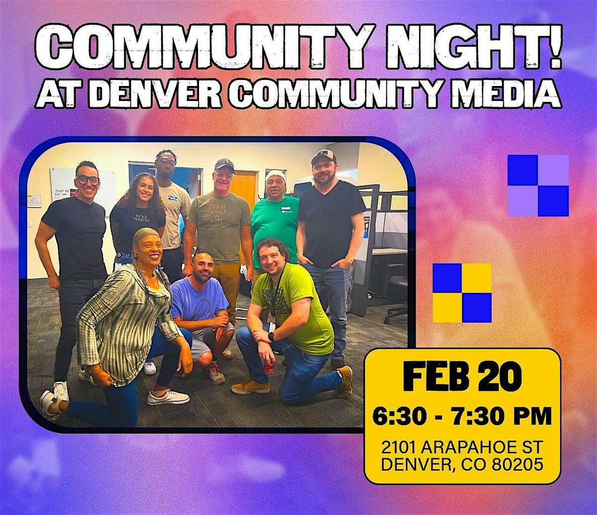 Every third Friday, the community comes together for pizza, projects, and good vibes at Denver Community Media. It’s a chill space to meet fellow creators, share what you’re working on, get updates on what’s happening at DCM, and hang out with people who love making things.