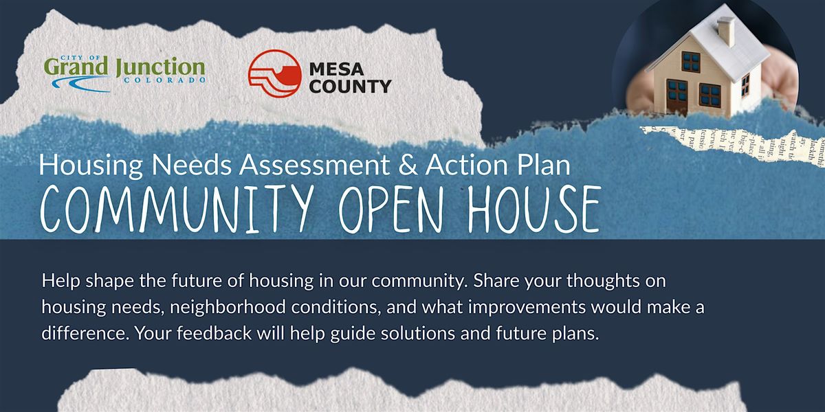 Join us in this drop-in Open House Style Event to help shape the future of housing in our community. Share your thoughts on housing needs, neighborhood conditions, and what improvements would make a difference. Your feedback will help guide solutions and future plans for both the City of Grand Junction and Mesa County.