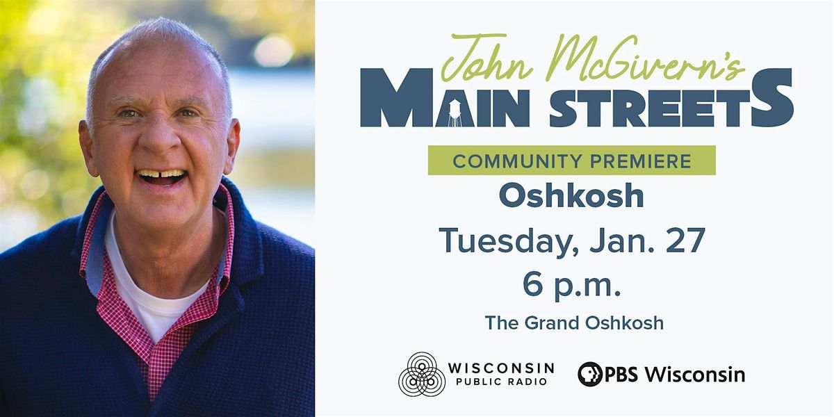 Oshkosh-area residents are invited to attend a free community screening of the Oshkosh episode of the hit public television show “John McGivern’s Main Streets.” Enjoy a special video greeting from John McGivern and Emmy Fink as part of the evening’s program! The event will take place at The Grand Oshkosh on Tuesday, Jan. 27. Join us for a cocktail hour hosted by Discover Oshkosh at 5 p.m. followed by the episode premiere at 6 p.m.