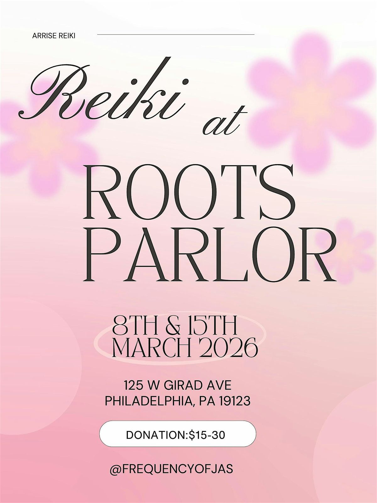 Join us for a peaceful afternoon of Community Reiki at Roots Parlor. This group experience is designed to help you slow down, reset , and gently reconnect with yourself as we transition into spring.