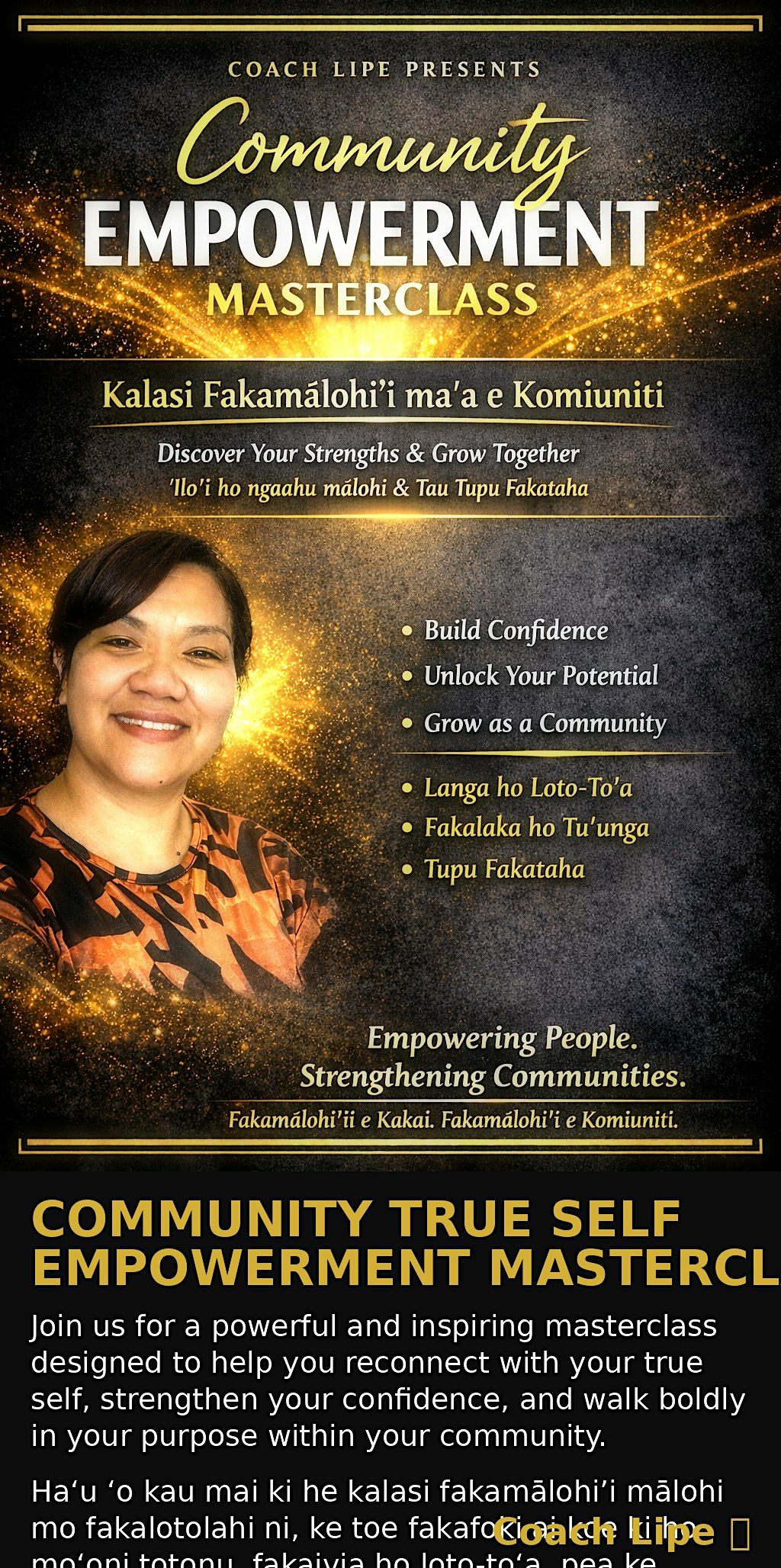 You are warmly invited to join our Community True Self Empowerment Masterclass — a powerful session focused in finding your purpose.Agenda