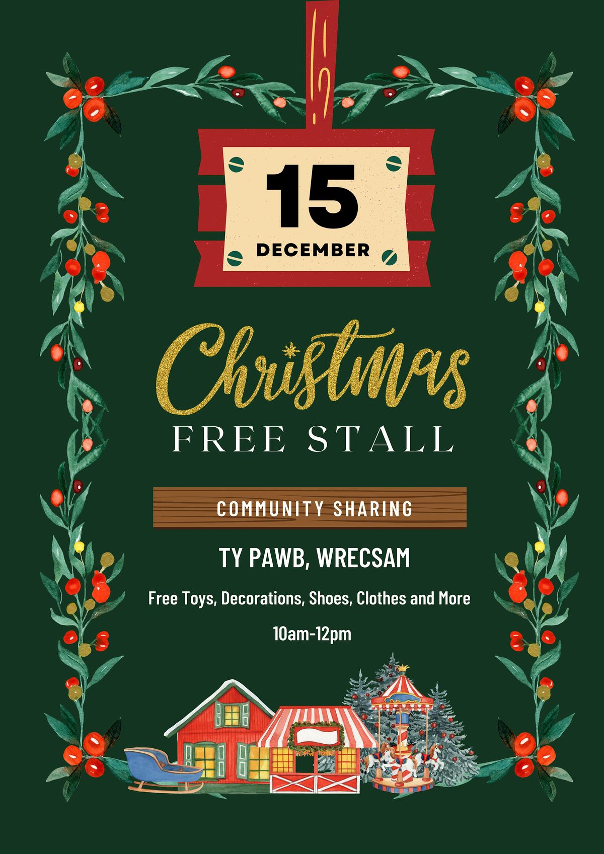 Yn y digwyddiad hwn byddwn yn dod â rhai o’n heitemau hyfryd sydd wedi’u rhoi ymlaen, gan gynnwys addurniadau, esgidiau, teganau a gemau, i’w rhoi’n rhad ac am ddim ar ein stondin rannu gymunedol.