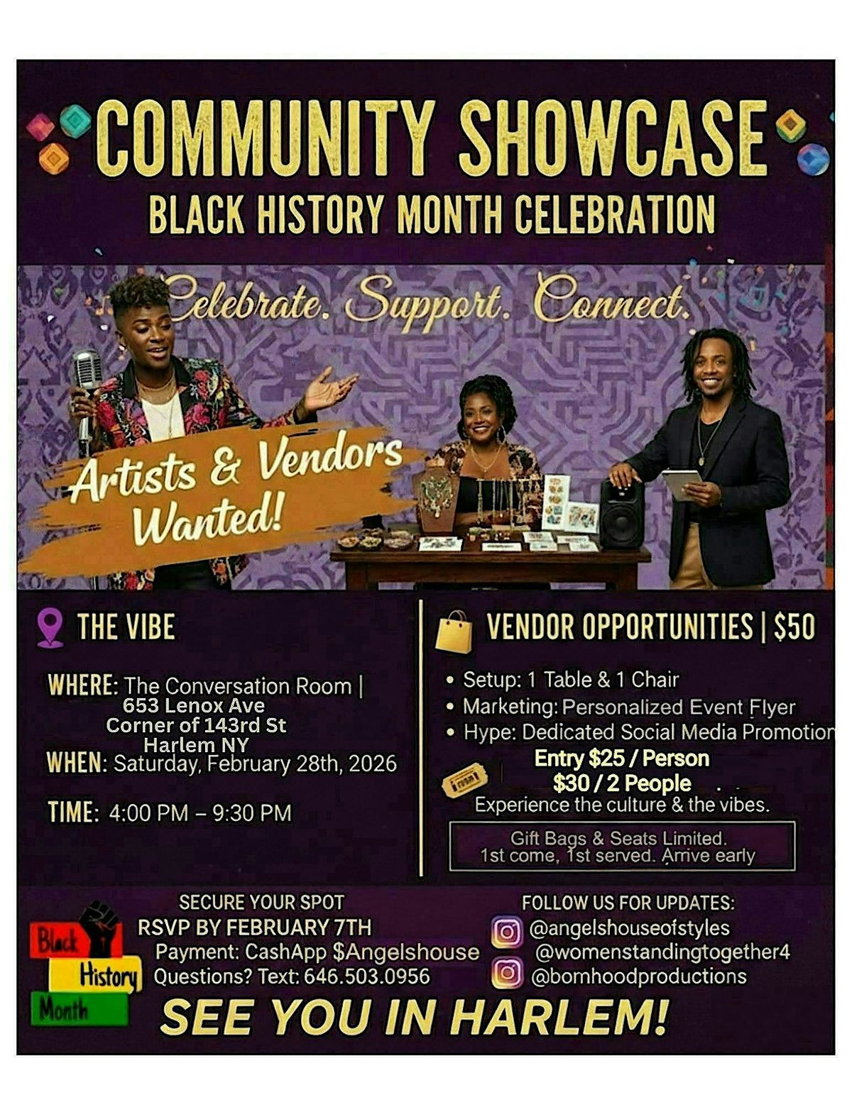 Welcome to The Conversation Room for our Community Showcase Celebrating Black History Month! Join us on February 28, 2026 at 4:00 PM (Eastern Time) to honor and celebrate the rich history and contributions of the Black community. Let's come together to share stories, music, art, and more. This event is a wonderful opportunity to connect, learn, and uplift one another. We can't wait to see you there!
