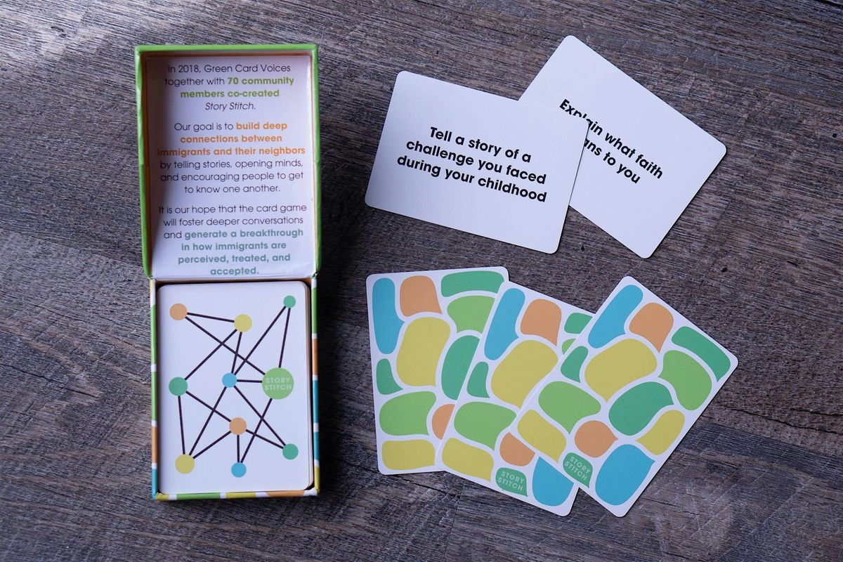 Story Stitch is an interactive, guided experience co-designed by Green Card Voices and the community to spark meaningful conversations and build empathy across diverse experiences. Through intentional prompts and listening, participants are invited to share stories, connect with others, and deepen understanding.