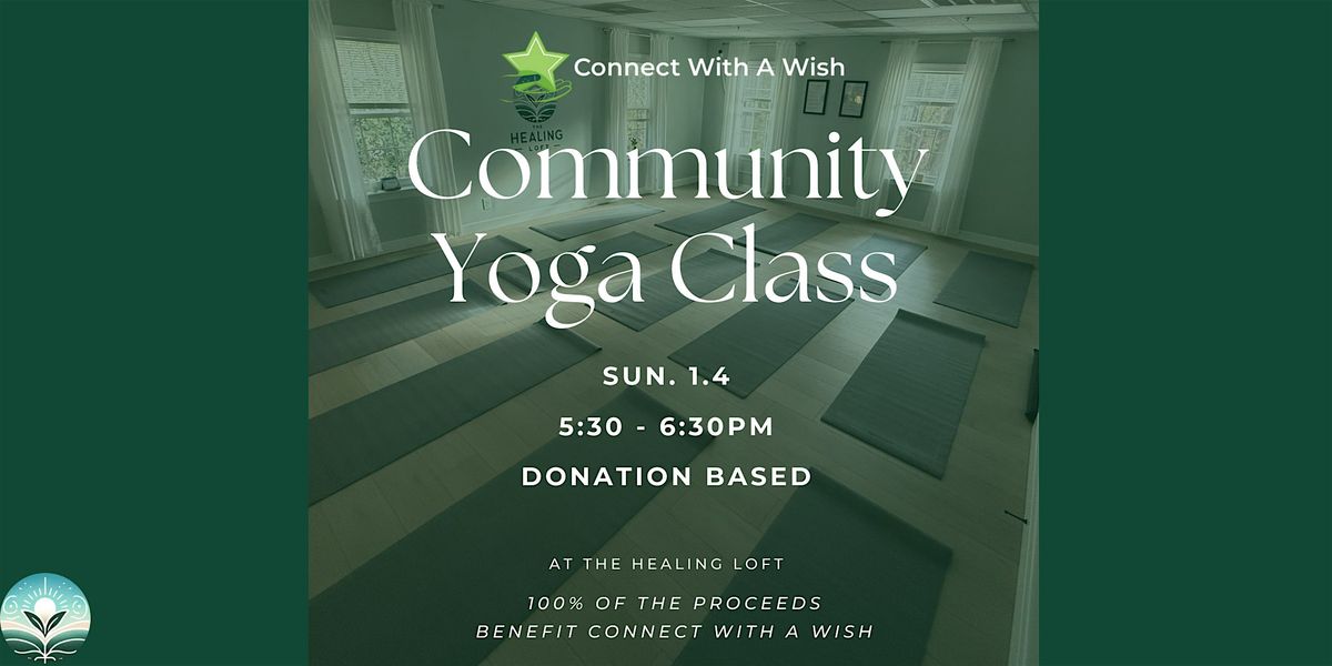 Join us on Sunday, January 4 for a special community yoga class to benefit Connect With a Wish, a local nonprofit supporting children in the foster care system. This is a donation based offering! Your entry fee will be a heartfelt monetary donation of your choosing.