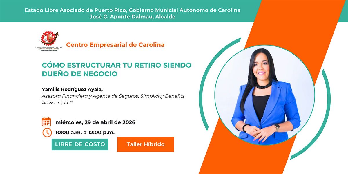 Este taller está diseñado para ofrecer a dueños de negocios establecidos las diferentes estrategias financieras necesarias para organizar su dinero y planificar un retiro sólido.