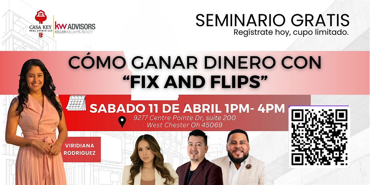 Aprende cómo ganar dinero comprando y vendiendo propiedades en nuestro evento "COMO HACER DINERO CON "FIX AND FLIPS". ¡No te lo pierdas!About this Event