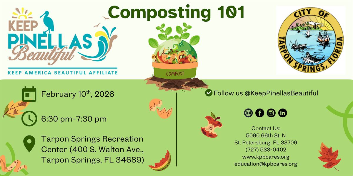 Join Keep Pinellas Beautiful to learn how your food scraps can become garden gold. Learn how to turn everyday waste into nutrient-rich “black gold” without getting yourself into a rotting situation. We’ll break down the do’s, don’ts, and decomposers that make the magic happen. Get ready to mulch over some new ideas and leave feeling energized to grow greener habits! Join us at 6:30 PM on Tuesday, February 10th at the Tarpon Springs Recreation Center to learn more!