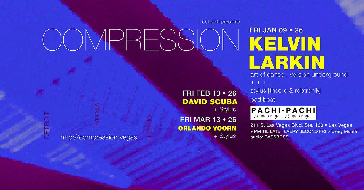 Compression is a monthly techno event dedicated to uncompromising underground electronic music. Every second Friday of the month, we bring world-class DJs and live acts to Las Vegas, maintaining the spirit that began 20 years ago in Hollywood. This is more than a partyāit's a commitment to authentic techno culture.