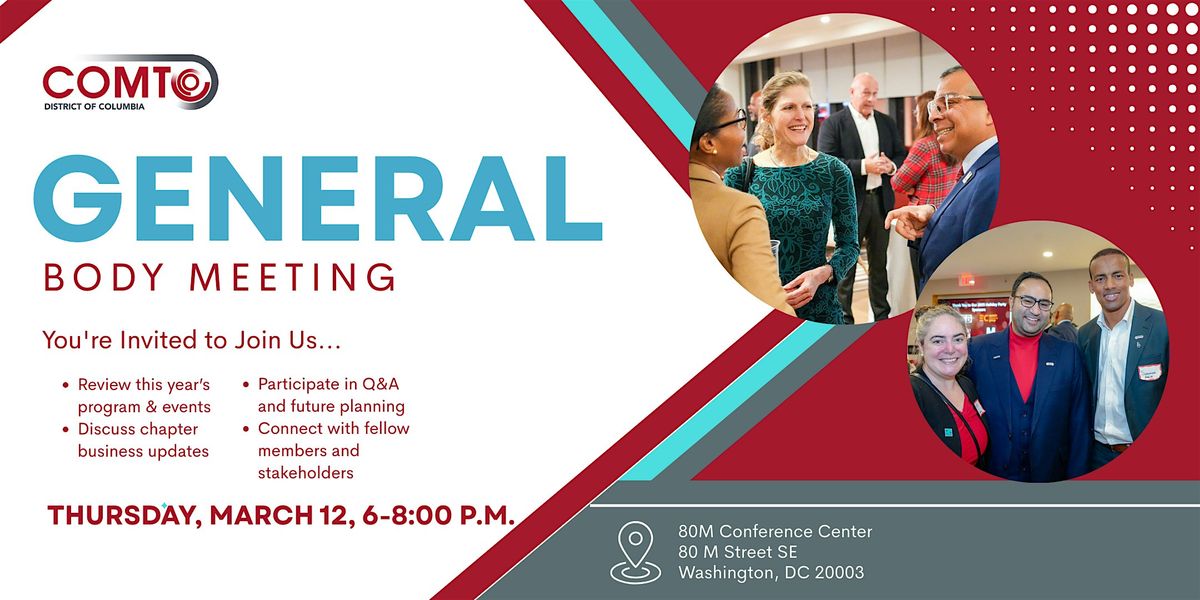 This will be the COMTO DC Chapter's first General Body Meeting of the year, hosted by WSP in the 80M Conference Center.