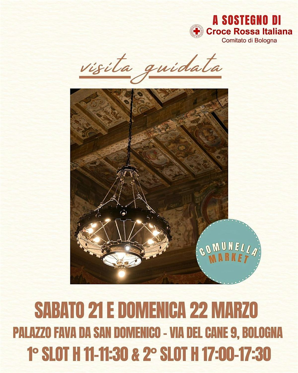 Sede di Croce Rossa Bologna, Palazzo Fava da San Domenico ospita il Comunella Market e può essere visitato in questa unica occasione