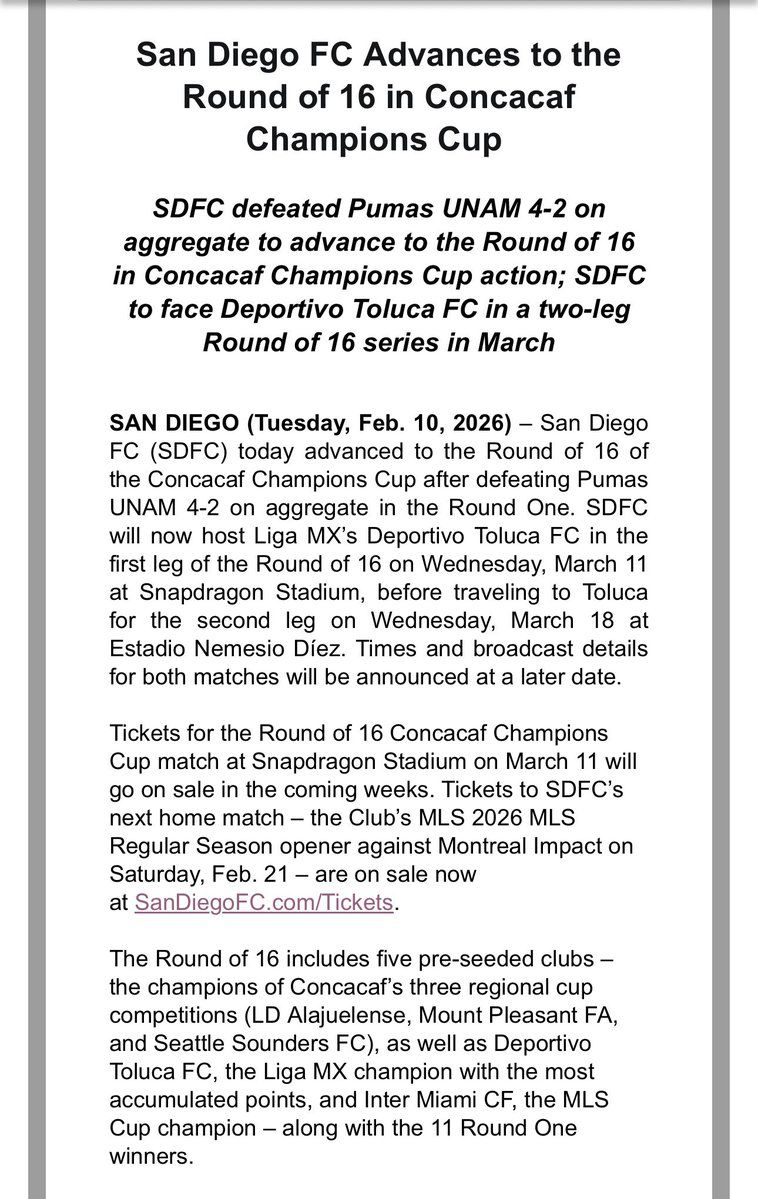 🌟 Journey into wonder at CONCACAF Champions Cup: Round of 16 - San Diego FC vs. Deportivo Toluca FC, where extraordinary experiences await around every corner! 🏛️ Set against the backdrop of Snapdragon Stadium in dynamic San Diego, CA, this event promises to exceed all expectations. 📅 Join us on March 10th, 2026 at 04:00 PM for a celebration that combines innovation, entertainment, and community spirit in perfect harmony. ✨ There will be an atmosphere where memories are made and stories come alive, ensuring every guest experiences something truly remarkable. 🎊 This is more than just an event; it's a journey into the extraordinary!http://maps.seatics.com/SnapdragonStadium_Soccer_2022-09-17_2022-07-25_0703_07252022_072130_SVGC_tn.png