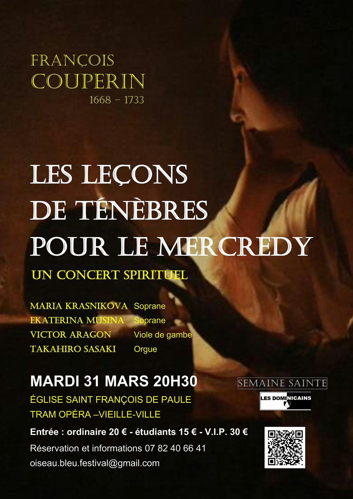 Interprétées dans l’écrin de l’église Saint-François de Paule à Nice, ces Leçons de Ténèbres offrent une expérience musicale rare, portée par deux voix de soprano et accompagnées par la viole de gambe et l’orgue, dans la tradition des concerts spirituels.