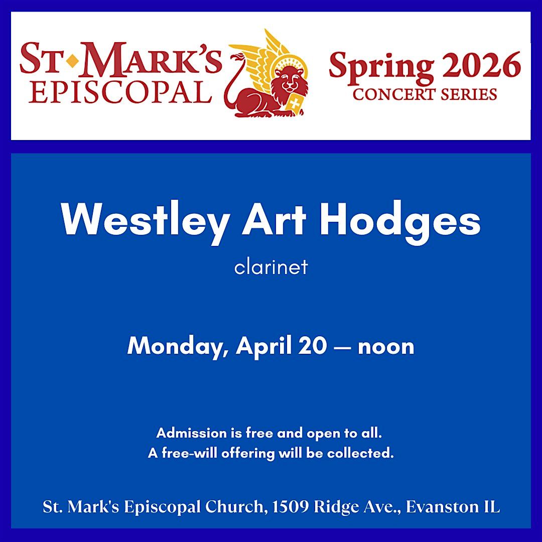 Join us on Monday, April 20, 2026, at 12pm (Noon) for a concert featuring clarinetist Westley Art Hodges. The concert is free and open to the public, and an offering will be collected with 50% going to the performer and the other half supporting St. Mark’s Piano and Organ Fund. For more information, please get in touch with Westley at [email protected].