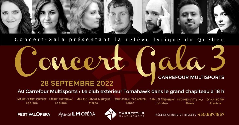 Nous sommes heureux de vous annoncer que le Concert-Gala 3 aura lieu au Club extérieur du Carrefour Multisports!Présentant la Relève lyrique du Québec avec: