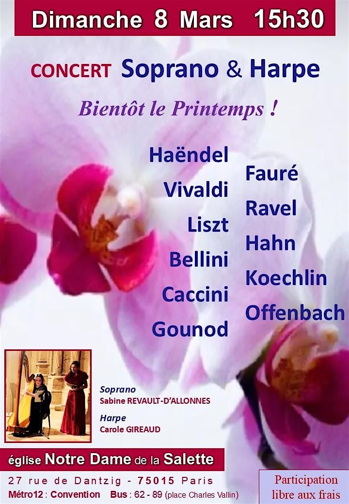 Concert : Soprano & Harpe   : programme  " Bient\u00f4t le Printemps ! "