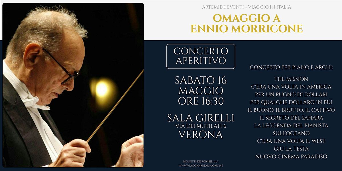 Unisciti a noi per un evento dal vivo unico, dedicato alla musica indimenticabile di Ennio Morricone! Goditi un aperitivo speciale mentre ti lasci trasportare dalle sue famose melodie, eseguite da musicisti eccezionali. Un'occasione perfetta per rilassarti, ascoltare buona musica e condividere bei momenti con amici e appassionati. Non perdere questa serata di emozioni in musica dal vivo!
